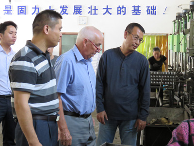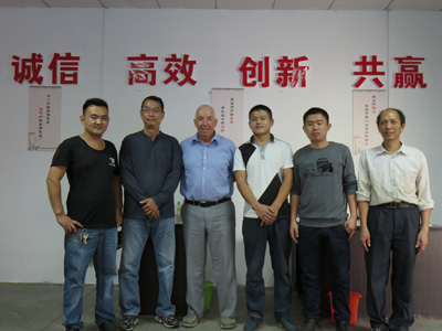 我們首先陪同凱文一行參觀了我們的新工廠。該工廠采用了全新套筒加工工藝。保證套筒絲牙精度達(dá)到6H級(jí)。套筒內(nèi)徑、外徑、長(zhǎng)度等指標(biāo)也全部達(dá)到國(guó)家最新JG/T163-2013鋼筋連接套筒標(biāo)準(zhǔn)。是廣東省內(nèi)少數(shù)幾家能達(dá)到此標(biāo)準(zhǔn)的生產(chǎn)企業(yè)。其間,凱文和黎生拿起我們生產(chǎn)的直螺紋套筒,不時(shí)點(diǎn)點(diǎn)頭。用英語(yǔ)交流了起來(lái)。凱文是英國(guó)最早從事鋼筋套筒行業(yè)的少數(shù)人之一。其在英國(guó)推廣的鋼筋籠技術(shù)一直使用至今。到今天入行年限已超過(guò)40年。真可謂一生只做一件事的典范。其行事風(fēng)格極其嚴(yán)謹(jǐn),是最典型的英國(guó)技術(shù)人才。嚴(yán)謹(jǐn)、負(fù)責(zé)是其身上最突出的特點(diǎn)。而黎生作為我們較早合作的外商之一,精通四種語(yǔ)言,以其鮮明的國(guó)際化令我們十分欽佩。